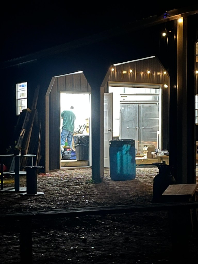 Since we’re a work in progress, we took it all apart to finish the electrical inside the ice house and move in our commercial refrigerator. The work was hard with very long hours. We’re commited to creating a community space and hangout that brings people together, no matter who they are. Special thanks to Michael Eby and David Muegge for their tireless energy and hard work.